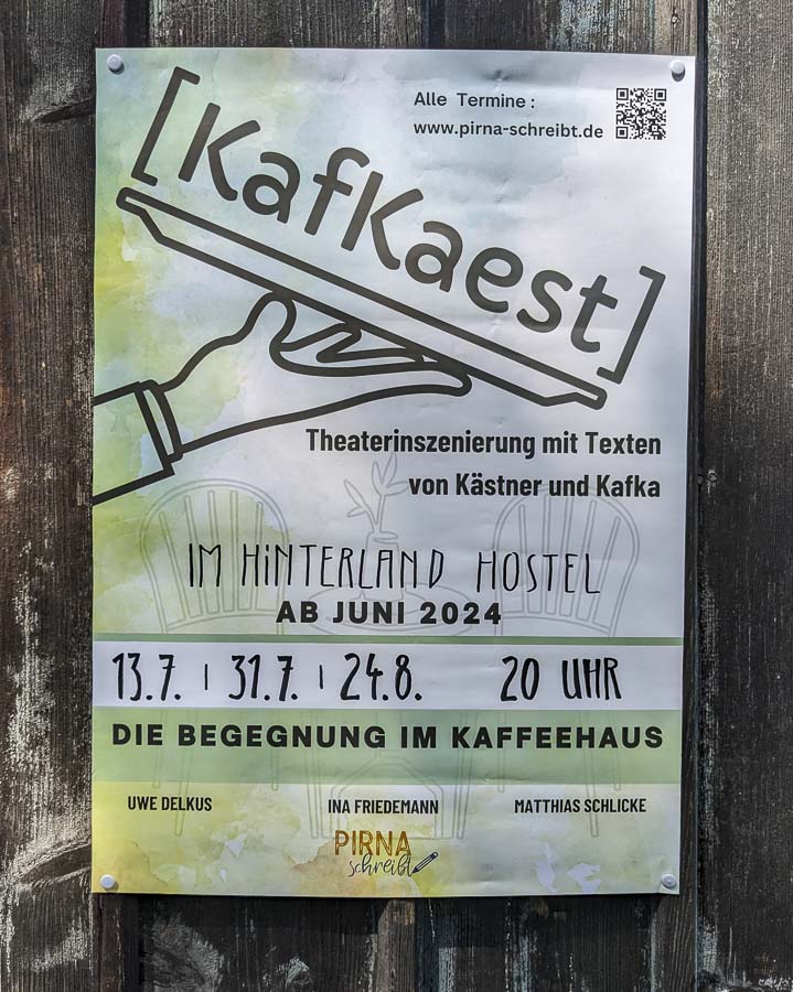 Was hätten sich Franz Kafka 🪲 (Prag) und Erich Kästner ☂️ (Dresden) wohl zu sagen – wenn sie sich in der Mitte, (also im Hinterland Hostel 🙃), treffen würden?